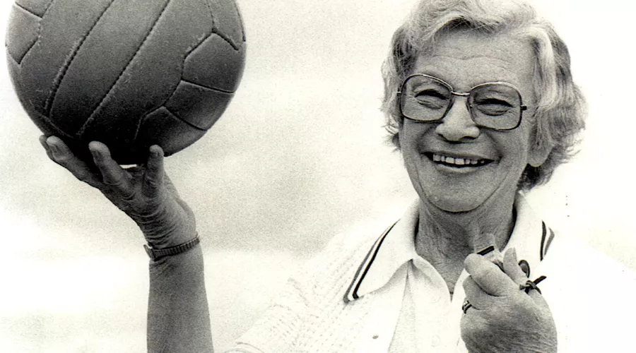 This photograph features Ella Athorn, whose career as a netball player, coach, umpire, and volunteer administrator spanned at least six decades.
